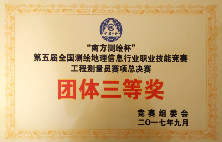 “南方測(cè)繪杯”全國(guó)第五屆測(cè)繪職業(yè)技能競(jìng)賽團(tuán)體三等獎(jiǎng)