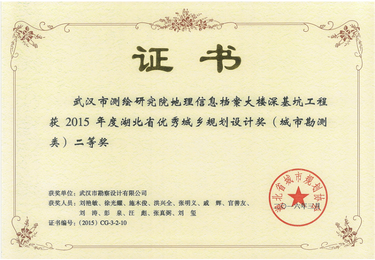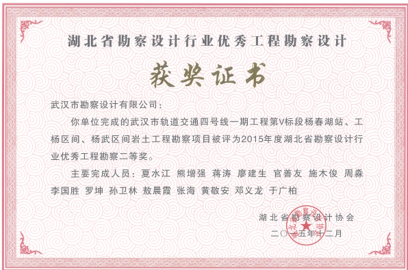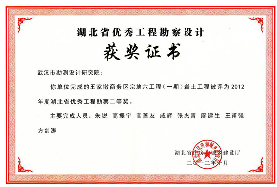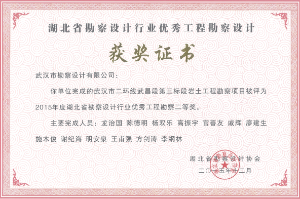 湖北省優(yōu)秀工程勘察二等獎