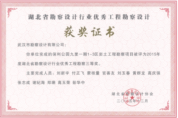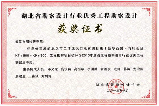 湖北勘察設計優(yōu)秀工程勘察三等獎