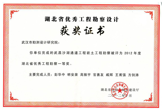 湖北省優(yōu)秀工程勘察一等獎