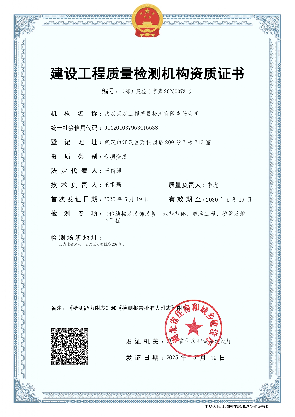 建設(shè)工程質(zhì)量檢測機(jī)構(gòu)資質(zhì)證書