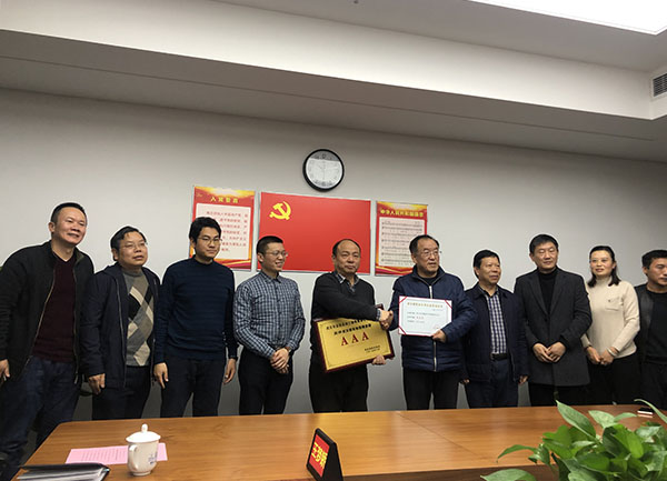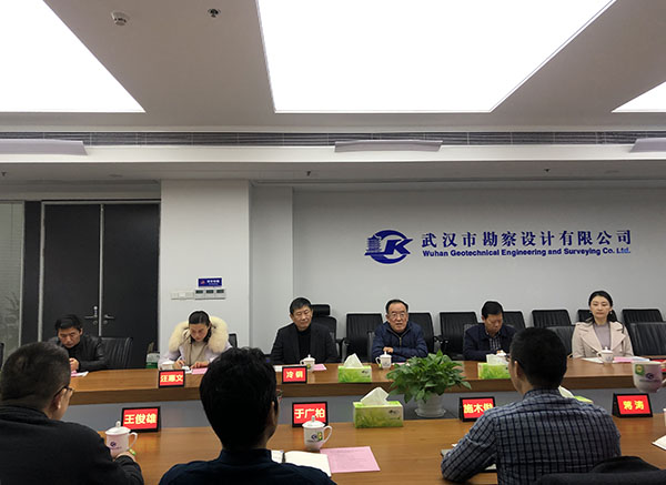 2019年12月17日上午,武漢建筑業(yè)協(xié)會到訪公司開展交流座談,并授予昌廈公司“武漢建筑業(yè)AAA級信用企業(yè)”稱號。武漢建筑業(yè)協(xié)會副會長李淼磊、秘書長李紅青,協(xié)會巖土工程分會副會長冷鋼、秘書長劉新梅、副秘書長汪惠文,勘察公司總經(jīng)理施木俊、副總經(jīng)理蔣濤,昌廈公司總經(jīng)理于廣柏、天漢公司總經(jīng)理王甫強及相關(guān)部門負(fù)責(zé)人和工作人員參加了會議和授牌儀式。