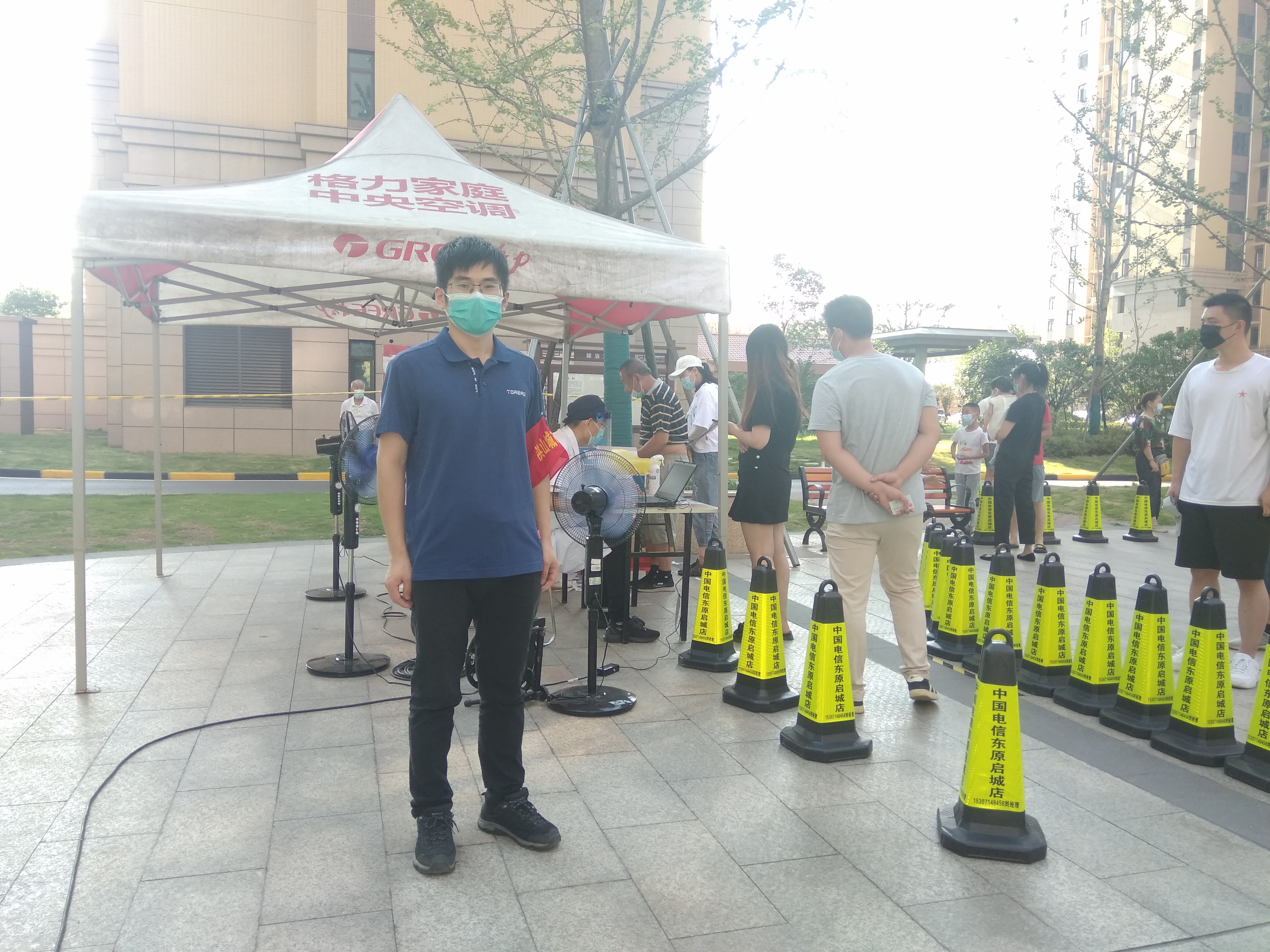 8月4日,公司黨員謝朋、蔣屹早上6:30便已到達(dá)社區(qū)統(tǒng)一安排的崗位上開始工作。據(jù)了解,勝利社區(qū)共有1998戶住戶,為避免人員密集,社區(qū)在全社區(qū)設(shè)置了3個(gè)核酸檢測(cè)點(diǎn),分時(shí)分批組織居民檢測(cè)。“請(qǐng)大家戴好口罩,保持好安全距離!”“請(qǐng)有序排隊(duì)等待檢測(cè),如有身體不適,請(qǐng)盡快聯(lián)系志愿者!”在炎炎夏日的高溫下,黨員們耐心地向社區(qū)居民告知注意事項(xiàng),維護(hù)好現(xiàn)場(chǎng)秩序,組織登記、測(cè)量體溫,每時(shí)段檢測(cè)完成后及時(shí)疏散,確保核酸檢測(cè)安全、有序進(jìn)行。通過一天的努力,勝利社區(qū)3個(gè)核酸檢測(cè)點(diǎn)分別檢測(cè)442人、479人、388人,共計(jì)1309人。