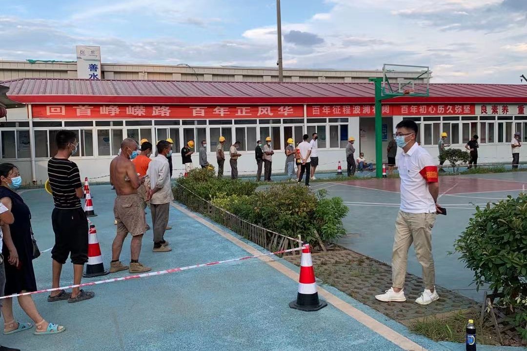 8月5日晚上18:00,公司黨員杜徐峰、宋友建、鄭暉、梅冬、余斌、陳澤風(fēng)、李子紅在社區(qū)工作調(diào)度下,來到黃家湖污水廠核酸檢測(cè)點(diǎn),協(xié)助做好核酸檢測(cè)工作。面對(duì)炎熱夏夜和蚊蟲叮咬,黨員們依然堅(jiān)守在檢測(cè)現(xiàn)場(chǎng),熱情耐心地為該項(xiàng)目現(xiàn)場(chǎng)共計(jì)200余名工人,進(jìn)行信息登記、掃碼、維持現(xiàn)場(chǎng)秩序、講解檢測(cè)流程等,工作直至凌晨12點(diǎn)才結(jié)束。“我們處于與病毒賽跑的關(guān)鍵時(shí)刻,作為黨員,我們義不容辭要為這場(chǎng)戰(zhàn)斗添油助力!”黨員們紛紛表示道。
