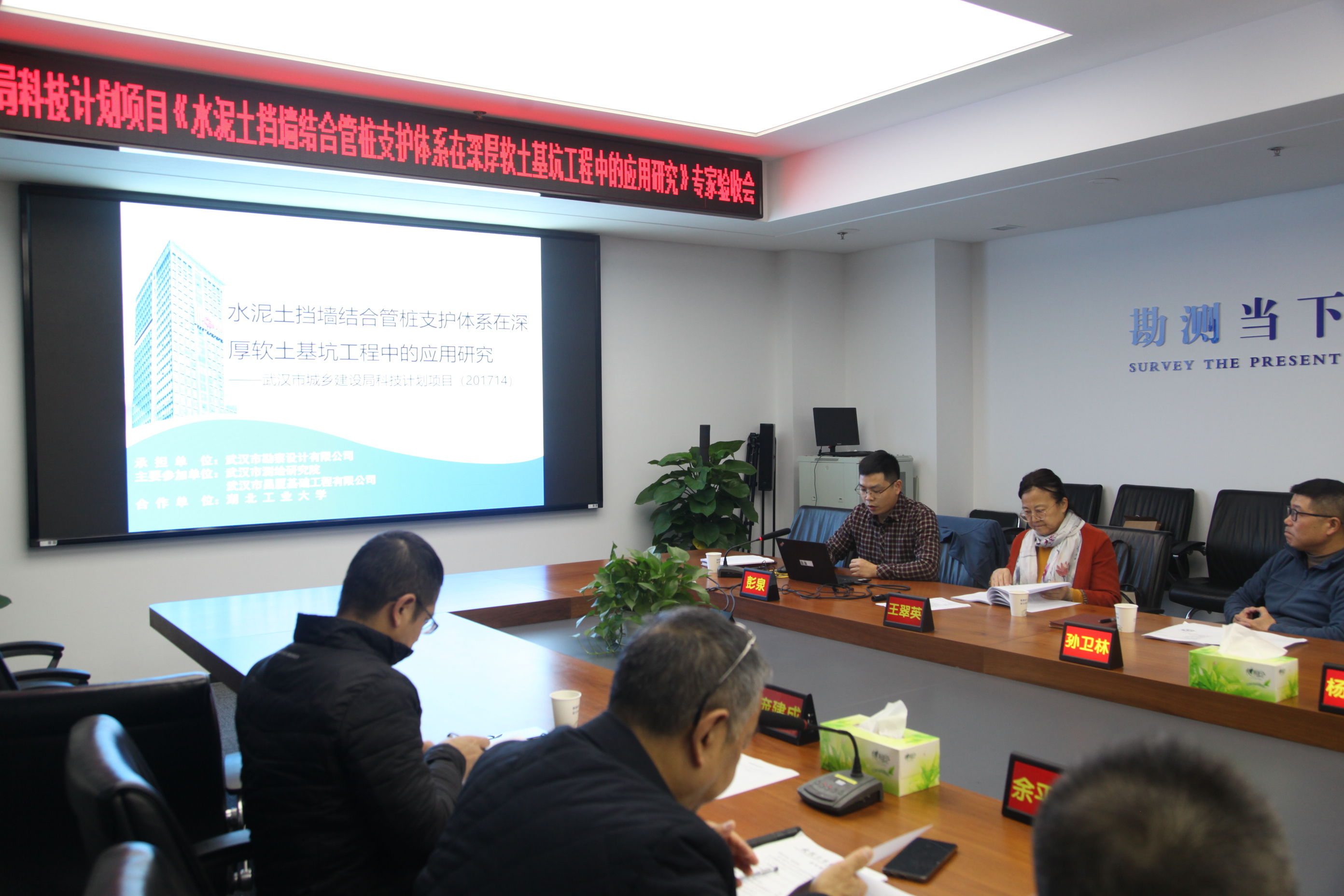 12月15日,武漢市城鄉(xiāng)建設(shè)局組織武漢土木建筑協(xié)會有關(guān)專家組,在公司1717會議室召開科研項目驗收會。公司與武漢市測繪研究院、湖北工業(yè)大學(xué)、武漢市昌廈基礎(chǔ)工程有限責(zé)任公司共同承擔(dān)完成的《水泥土擋墻結(jié)合管樁支護(hù)體系在深厚軟土基坑工程中的應(yīng)用研究》(項目編號 201714)科研項目順利通過驗收。武漢市城鄉(xiāng)建設(shè)局勘察設(shè)計與科技處處長徐蘭,公司總經(jīng)理施木俊等領(lǐng)導(dǎo)參加會議。