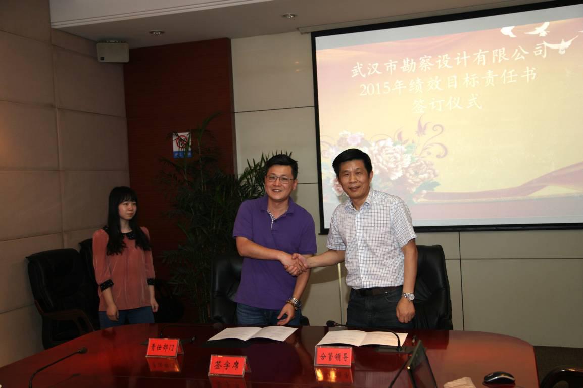 2015年5月14日,公司績(jī)效目標(biāo)領(lǐng)導(dǎo)小組組織召開了隆重的“勘察公司2015年績(jī)效目標(biāo)責(zé)任書簽訂儀式”。公司高層管理人員分別與各分管部門負(fù)責(zé)人簽訂了部門績(jī)效目標(biāo)責(zé)任書,為勘察公司年度績(jī)效目標(biāo)的完成攜手努力,共同推動(dòng)公司各項(xiàng)生產(chǎn)及管理工作高效有序開展,為客戶提供優(yōu)質(zhì)可靠的服務(wù),提升公司品牌影響力和行業(yè)地位。通過年度績(jī)效目標(biāo)任務(wù)的落實(shí),逐步實(shí)現(xiàn)勘察公司中長(zhǎng)期發(fā)展戰(zhàn)略目標(biāo)。
