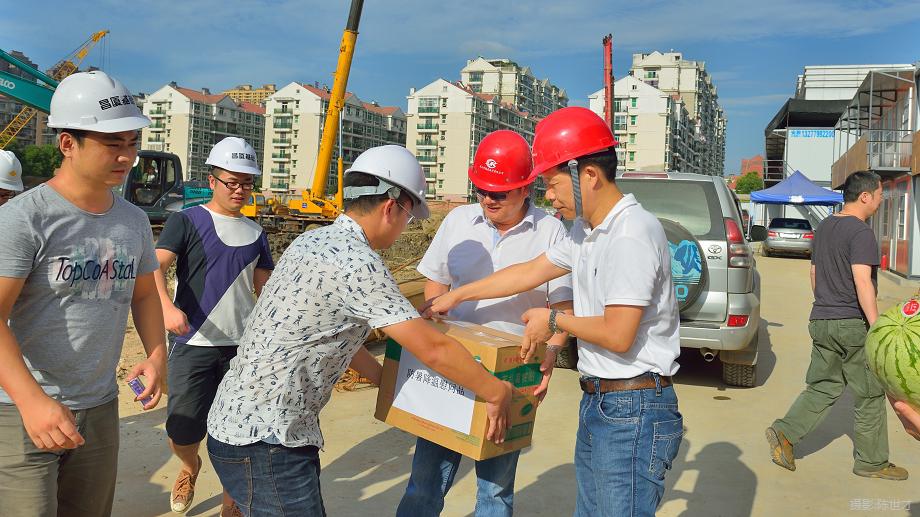 每到一處工地現(xiàn)場(chǎng),肖建華院長(zhǎng)和肖輝書記都會(huì)仔細(xì)聆聽(tīng)項(xiàng)目的概況,問(wèn)詢項(xiàng)目開(kāi)展及現(xiàn)場(chǎng)作業(yè)人員生產(chǎn)生活等情況。在與現(xiàn)場(chǎng)職工親切交談過(guò)程中,肖建華院長(zhǎng)和肖輝書記對(duì)堅(jiān)守一線辛勤工作的作業(yè)人員給予了充分的肯定和高度的贊揚(yáng),并囑咐公司管理人員:一是在后勤方面務(wù)必給一線職工們最齊全的保障和最周到的服務(wù);二是在確保工程質(zhì)量和進(jìn)度的同時(shí),要注意高溫條件下的防暑降溫措施和安全生產(chǎn)保障措施。最后,肖建華院長(zhǎng)、肖輝書記和廖建生董事長(zhǎng)代表測(cè)繪院和公司向現(xiàn)場(chǎng)職工贈(zèng)送了防暑降溫藥品和消暑解渴食品。