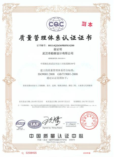 2015年6月3日~4日,中國(guó)質(zhì)量認(rèn)證中心對(duì)我公司(勘察公司和昌廈公司,下同)的兩個(gè)三標(biāo)一體化管理體系進(jìn)行了聯(lián)合監(jiān)督審核。本次監(jiān)督審核涉及到勘察公司三標(biāo)體系范圍測(cè)繪工程、土地登記代理增項(xiàng),昌廈公司三標(biāo)體系范圍工程勘察減項(xiàng),特別是勘察公司三標(biāo)體系的增項(xiàng),直接關(guān)系到公司相關(guān)業(yè)務(wù)的生產(chǎn)活動(dòng)。為了做好迎審準(zhǔn)備,技術(shù)質(zhì)量部(體系辦)組織召開多次會(huì)議布置工作,并對(duì)各部門,特別是涉及到增項(xiàng)的測(cè)繪工程公司的準(zhǔn)備工作進(jìn)行多次監(jiān)督檢查。在公司領(lǐng)導(dǎo)的悉心指導(dǎo)和各部門的大力支持下,我公司順利通過了中國(guó)質(zhì)量認(rèn)證中心的監(jiān)督審核,2015年7月29日取得了新頒發(fā)的勘察公司和昌廈公司的三標(biāo)體系證書,為各生產(chǎn)部門的生產(chǎn)經(jīng)營(yíng)活動(dòng)提供了保障,為進(jìn)一步提升公司管理水平奠定了堅(jiān)實(shí)基礎(chǔ)。(技術(shù)質(zhì)量部)
