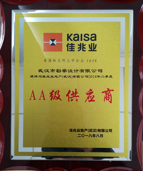 近日獲悉,武漢市勘察設(shè)計(jì)有限公司榮獲佳兆業(yè)地產(chǎn)(武漢)有限公司2018年二季度“AA”級(jí)供應(yīng)商榮譽(yù)稱號(hào),這項(xiàng)榮譽(yù)不僅是佳兆業(yè)地產(chǎn)集團(tuán)對(duì)我公司工程質(zhì)量、工作效率和后期服務(wù)的肯定,更是對(duì)我公司綜合實(shí)力的充分贊賞。對(duì)此,我們心懷感恩,武漢市勘察設(shè)計(jì)有限公司所取得的每一點(diǎn)進(jìn)步和成績(jī),都離不開(kāi)廣大客戶的關(guān)注、信任、支持和肯定。