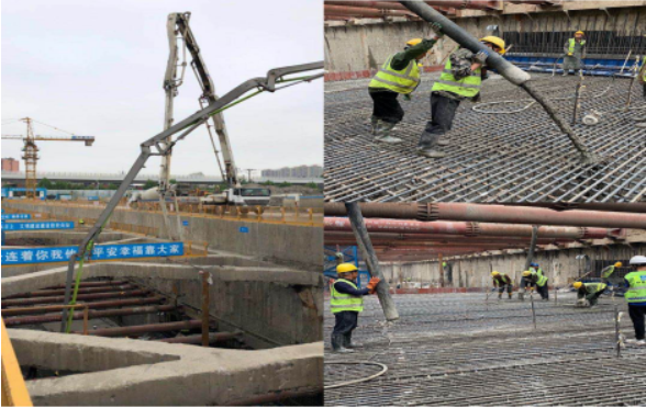 2019年4月26日下午,伴隨著最后一方混凝土振搗密實(shí),漢口國際濱江商務(wù)區(qū)地下環(huán)路首塊底板順利澆筑成功。此次底板澆筑成功標(biāo)志著地下環(huán)路基坑工程順利開挖到底并進(jìn)入主體結(jié)構(gòu)施工階段。